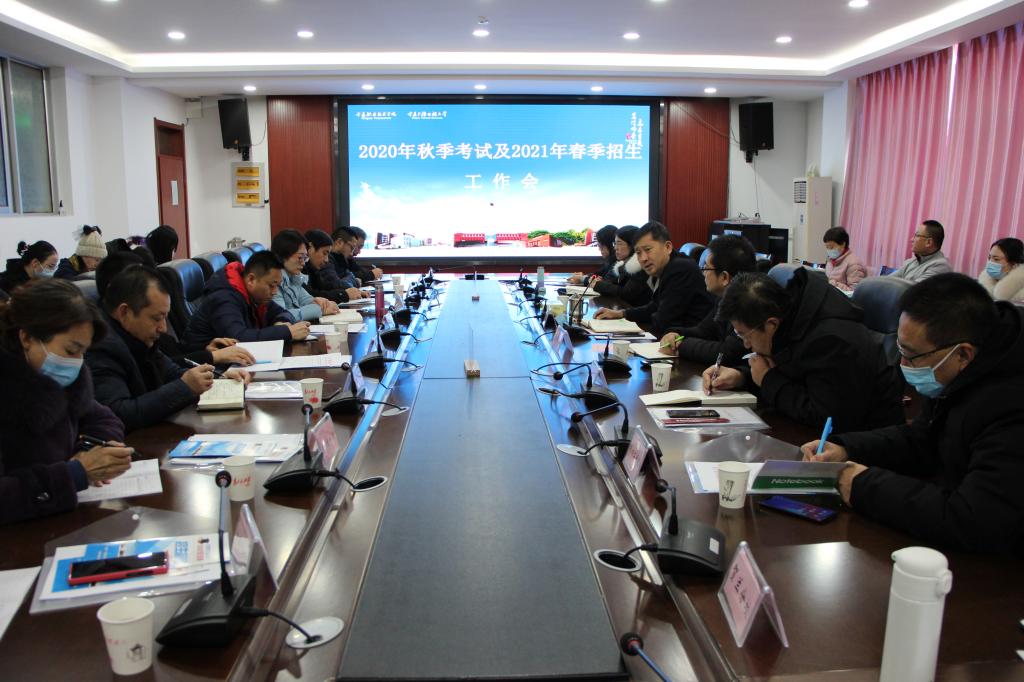 会上,罗建红副处长总结回顾了2020年秋季招生工作,并结合国家开放大学招生会议精神,对2021年春季招生工作的指导思想、招生计划、招生宣传、入学资格审核、新生入学照片、清网行动、信息化建设以及学习中心的设置与管理办法等八个层面进行了具体安排。