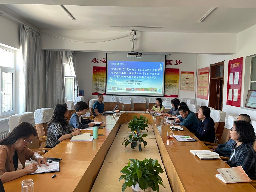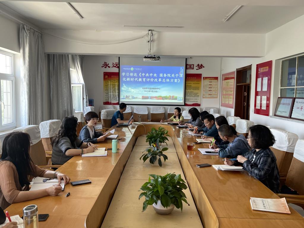 528日上午,远程学习支持服务中心召开全体教师会议,组织大家学习了《中共中央 国务院关于深化新时代教育评价改革总体方案》、《宁夏回族自治区深化新时代教育评价改革工作任务清单》和《宁夏回族自治区深化新时代教育评价改革负面清单》文件精神。