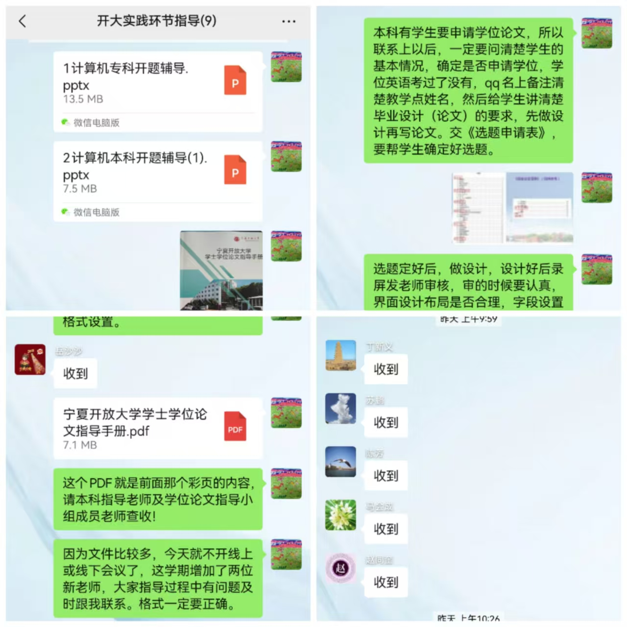 此外,针对近年来申请学位学生人数逐年增加的趋势,闫坤豪老师还向参会教师同步政策动态与学校应对举措:国家开放大学已于 2025 年春季调整学位外语通过率要求;为提升学位论文申报通过率,宁夏开放大学各专业已组建学位论文指导小组,专门负责学位论文的复审工作。基于此,特别提醒本科阶段的指导教师要进一步强化责任意识,以高度负责的态度做好各项指导工作,助力学生顺利完成学位申请。