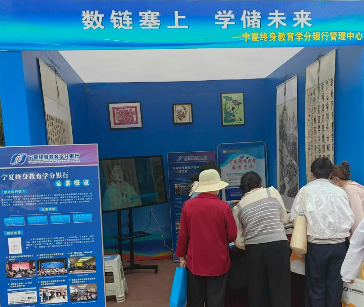 宁夏终身教育学分银行管理中心作为全民终身学习专题展区的重要参展单位,积极参与并精心布展通过学员创新创业大赛获奖作品、老年大学书画作品等学习成果,展示学分银行运行机制,方位呈现了学分银行在运行模式探索、一体化平台建设、标准体系等方面的创新成果与实践经验。