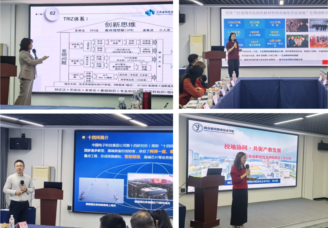 在主旨报告环节,四位南京专家结合自身领域实践,带来极具前瞻性与实用性的专题分享。江苏省科学技术创新方法研究会秘书长娄辉以《江苏创新方法研究会的实践与探索》为题,系统梳理了创新创业领域的典型方法论,重点剖析 TRIZ 创新方法在解决实际技术难题中的应用案例,展现江苏在创新方法推广方面的成熟经验,并诚挚邀请宁夏有需求的单位在会后开展专项对接,深化合作落地中国石化扬子石油化工有限公司企业科协秘书长张荣荣发表《中石化扬子石化发展现状、行业未来趋势及企业科协工作实践交流》主题报告,全面分享企业在生产智慧化改造中的前沿实践与显著成果,从技术应用、效益提升、风险防控等维度,深入解读智慧化改造对传统产业升级的核心价值,为宁夏企业提供可借鉴的转型路径中电科十四所资深信息化专家姜洋围绕《电子装备智能制造的实践探索与推广应用》展开论述,结合具体项目案例,详细拆解智能工厂的建设逻辑、技术架构与实施方案,为参会者传递电子装备制造领域的先进技术理念与实操经验,助力宁夏相关企业提升智能制造水平南京机电职业技术学院科研与校企合作处处长李木香以《高校产学研合作的实践案例与经验分享》为题,生动介绍该校在教学改革深化、科研项目协同、师资队伍建设及高素质人才培养等方面的创新举措,重点展示学校在智能制造实验室建设、校企协同育人模式探索中的亮眼成果,并发出诚挚邀请,欢迎宁夏各高校师生赴南京机电职业技术学院考察交流,共促教育与产业深度融合。