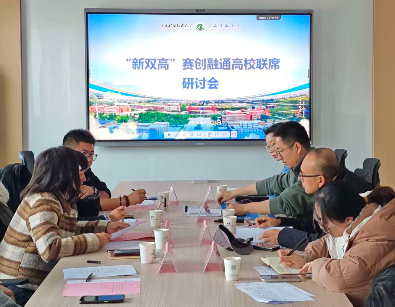 为扎实推进我校“新双高”建设,深化教育教学改革,推动赛创融合与学分转换机制创新,2025年12月4日下午,“新双高”赛创学分转换高校联席研讨会在我校金凤校区召开。宁夏大学创新创业学院主任陈瑾、宁夏工商职业技术大学创新创业学院院长胡亚荣、宁夏大学新华学院创新创业中心主任谢海波、宁夏职业技术大学创新创业学院副院长马辉等高校的创新创业教育专家齐聚一堂,会议由远程学习支持服务中心(宁夏终身教育学分银行管理中心)主任杨晓燕主持。
