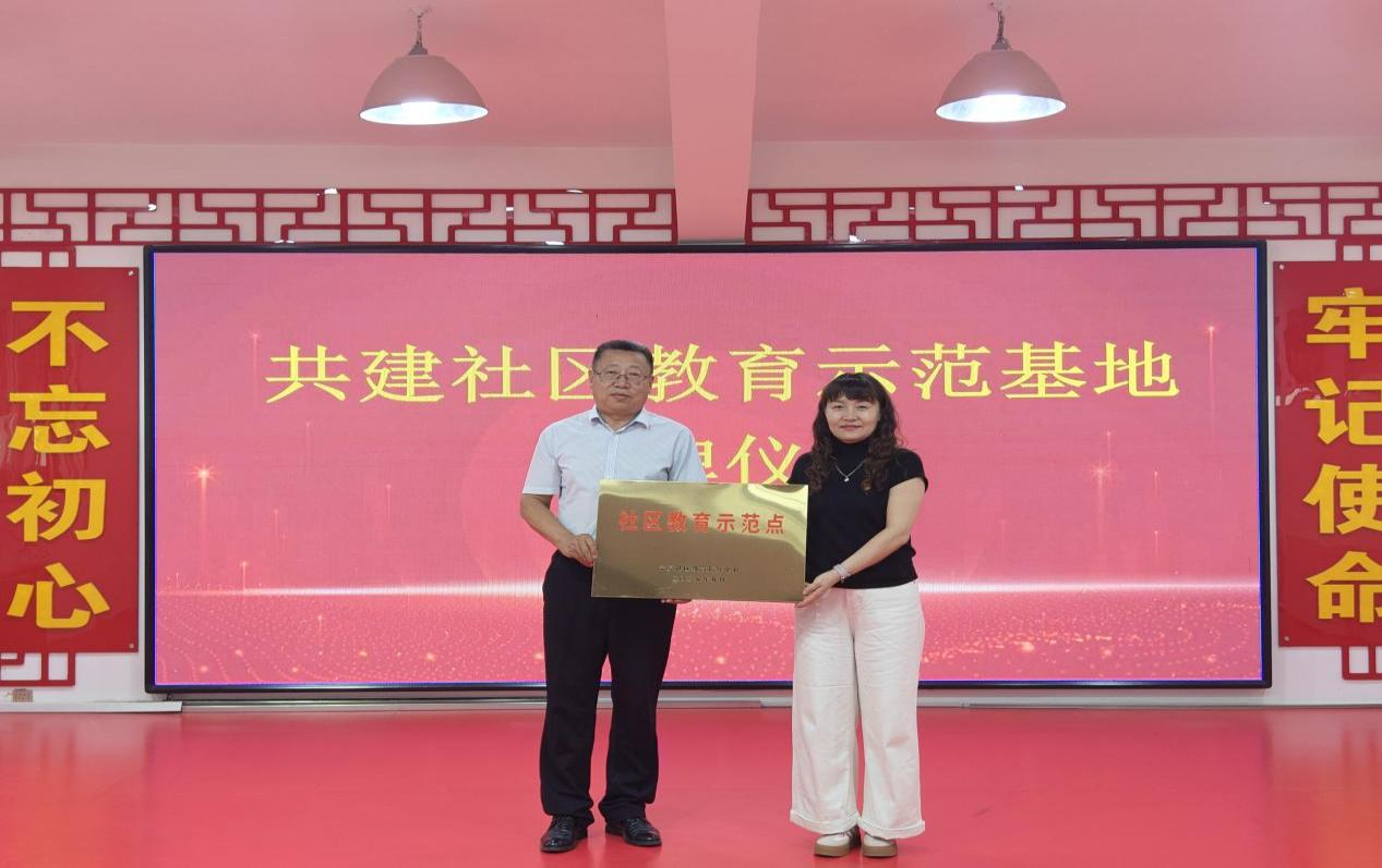 9月23日,继续教育学院与长城花园社区共建社区教育示范点授牌仪式暨“双节同庆聚社区,共建携手话家美”主题活动在城花园社区党群活动中心举行,继续教育学院院长李建忠带领部门全体教师、长城花园社区副书记韩薇及社区工作人员、社区居民参加了授牌仪式。