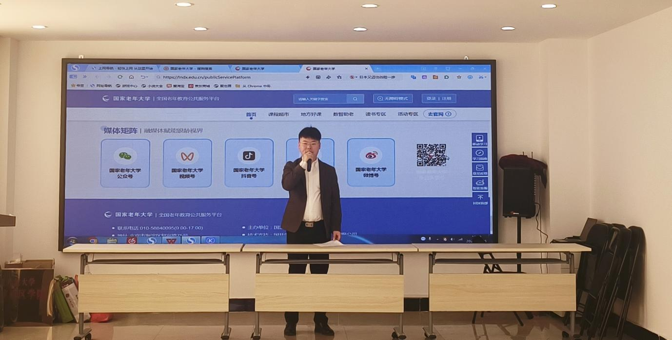 展演结束后,副校长李阳向现场老年人推介了国家老年大学平台。作为专为老年人打造的免费线上智慧学堂,该平台涵盖健康养生、实用技能、文化娱乐、安全常识等多类课程,支持直播学习、全国性老年赛事参与,还配备智能助手与客服,操作便捷、资源丰富。