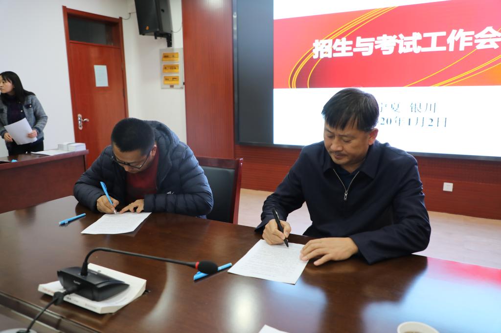 会上,焦玉柱副校长与考点负责人签订了《宁夏广播电视大学考试保密责任书》。远程教育处副处长陈青传达了深圳质量工作会议精神,通报了国家开放大学期末考试会议情况,部署了全区电大2019年秋季学期期末考试工作。远程教育处处长陈冲传达了国家开放大学第一次党代表大会荆德刚书记的报告,部署了全区电大2020年春季开放教育招生工作。